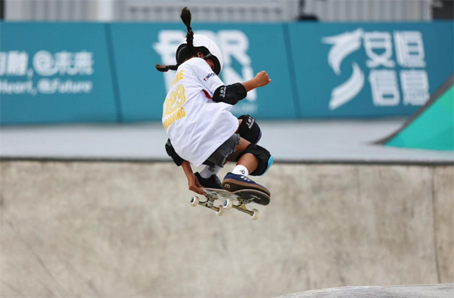 滑板比赛女子碗池决赛8名选手中,普遍年龄都在10多岁。