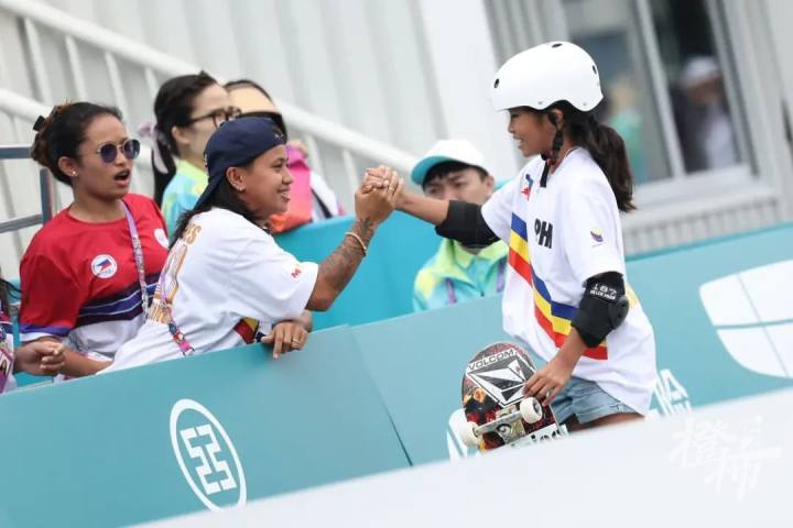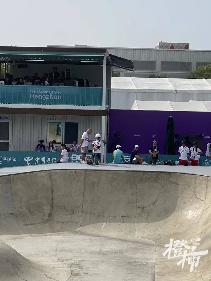 今天参加滑板项目女子碗池决赛的选手年龄都很小,很多观众说,有些选手看上去还萌萌的,没想到小小年纪就在亚运会赛场上展示自我。