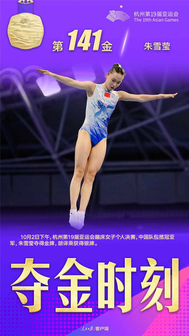 朱雪莹摘得杭州亚运会蹦床女子个人项目金牌