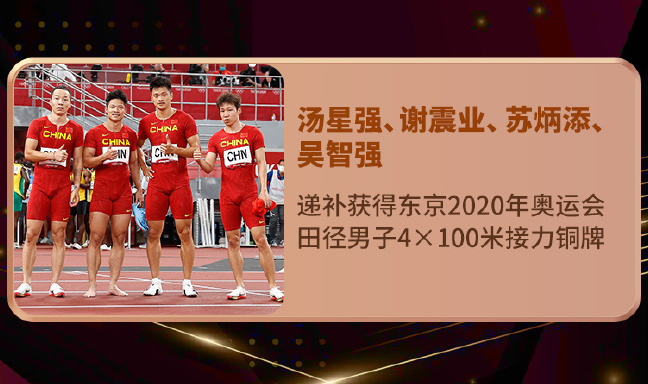 中国奥委会刚刚宣布,10月4日晚杭州亚运会田径比赛结束后,将在杭州奥体中心体育场举行递补奥运奖牌颁奖仪式。为递补获得伦敦奥运会女子20公里竞走金、银、铜牌的切阳什姐、刘虹、吕秀芝和递补获得东京奥运会男子4×100米接力铜牌的汤星强、谢震业、苏炳添、吴智强颁发奖牌。