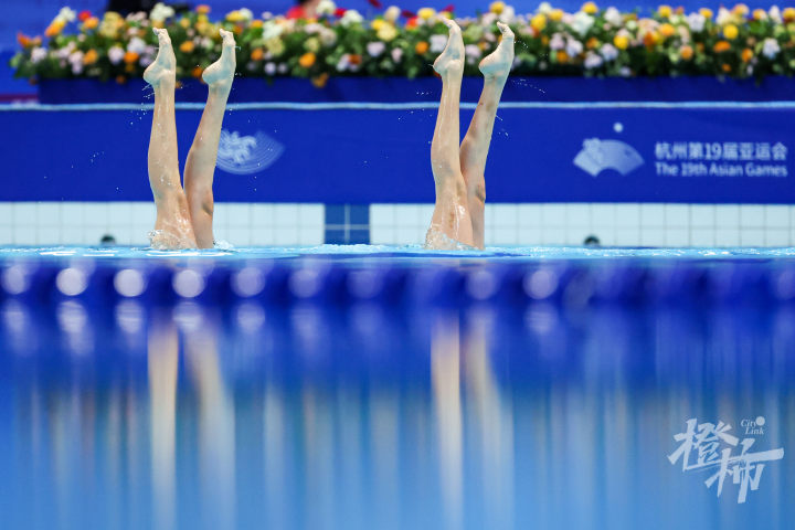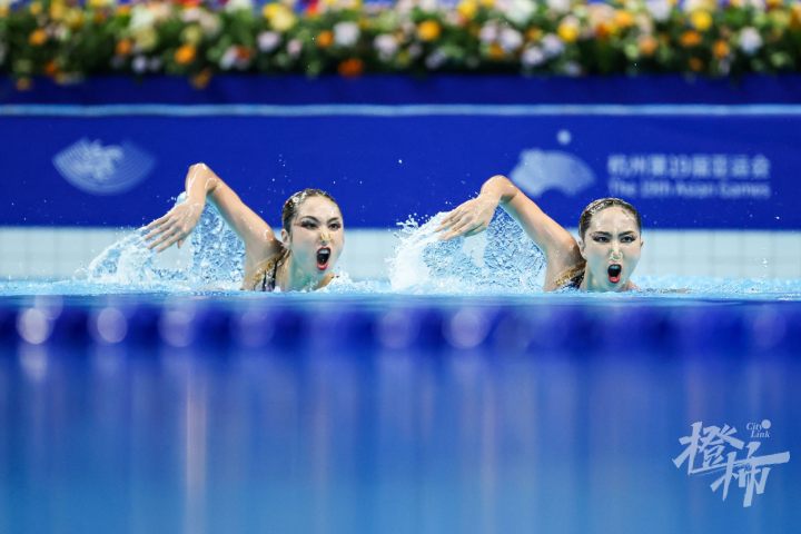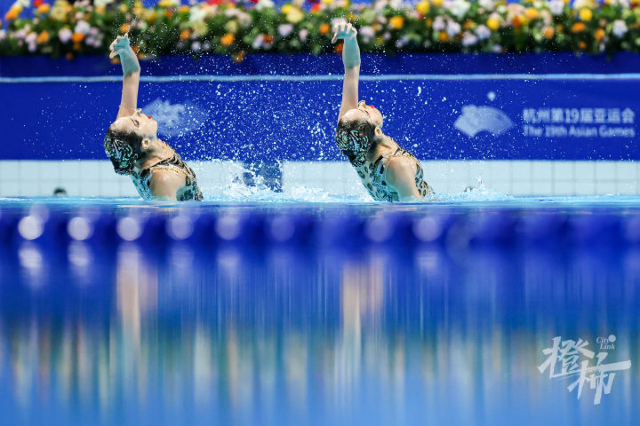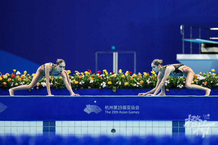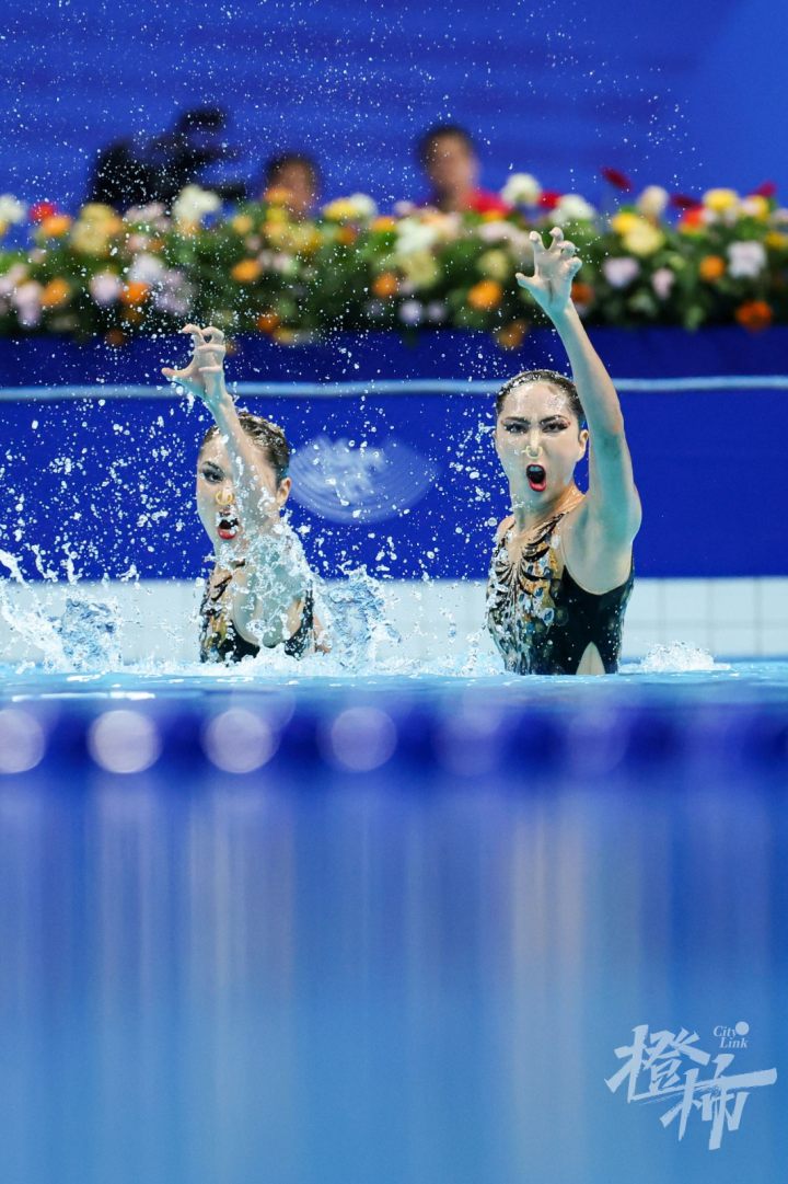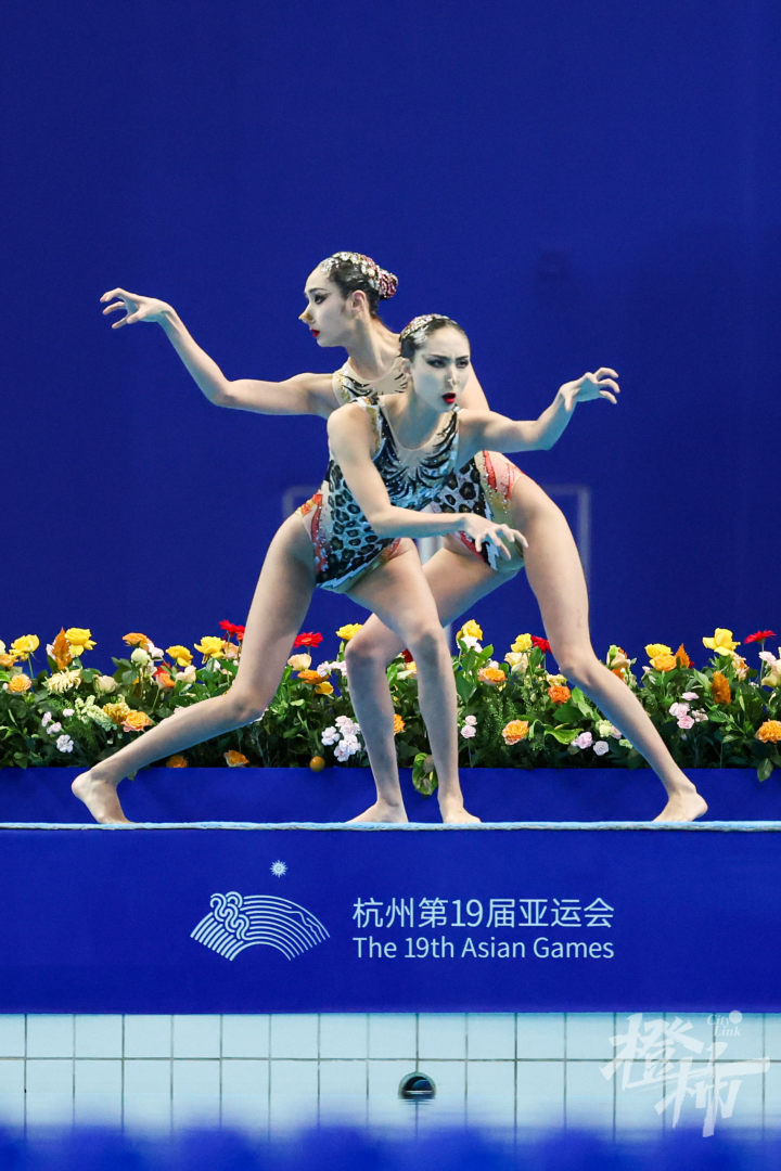 今天下午在杭州奥体中心游泳馆,这对双胞胎姐妹带来的主题是《豹》,这套动作也是在今年福冈世锦赛上表演过的,但在原有的基础上,两姐妹增加了一定的难度,更考验技巧。