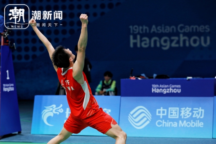潮新闻讯 2:0,杭州亚运会羽毛球男单项目决赛以李诗沣的胜利画上句点。赢下比赛的李诗沣激动地紧握双拳朝天呐喊,并再次上演自己标准的庆祝动作——侧空翻。10月7日,羽毛球项目收官日,李诗沣这位“00后”成了国羽继“超级丹”后再次获得该项目冠军的选手。