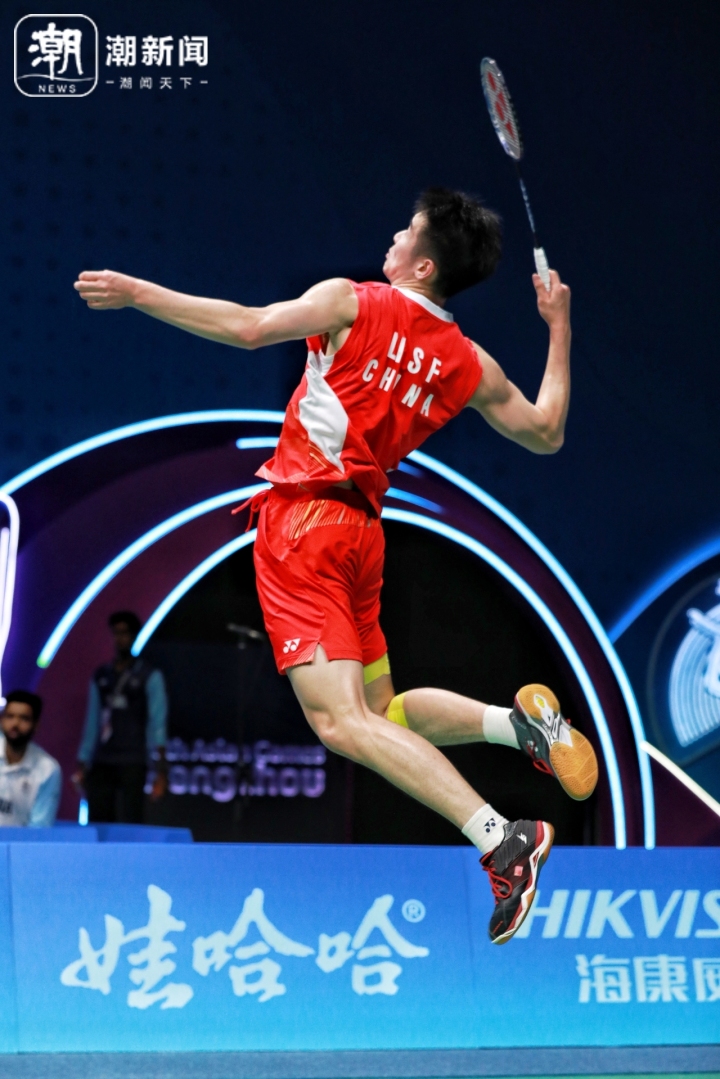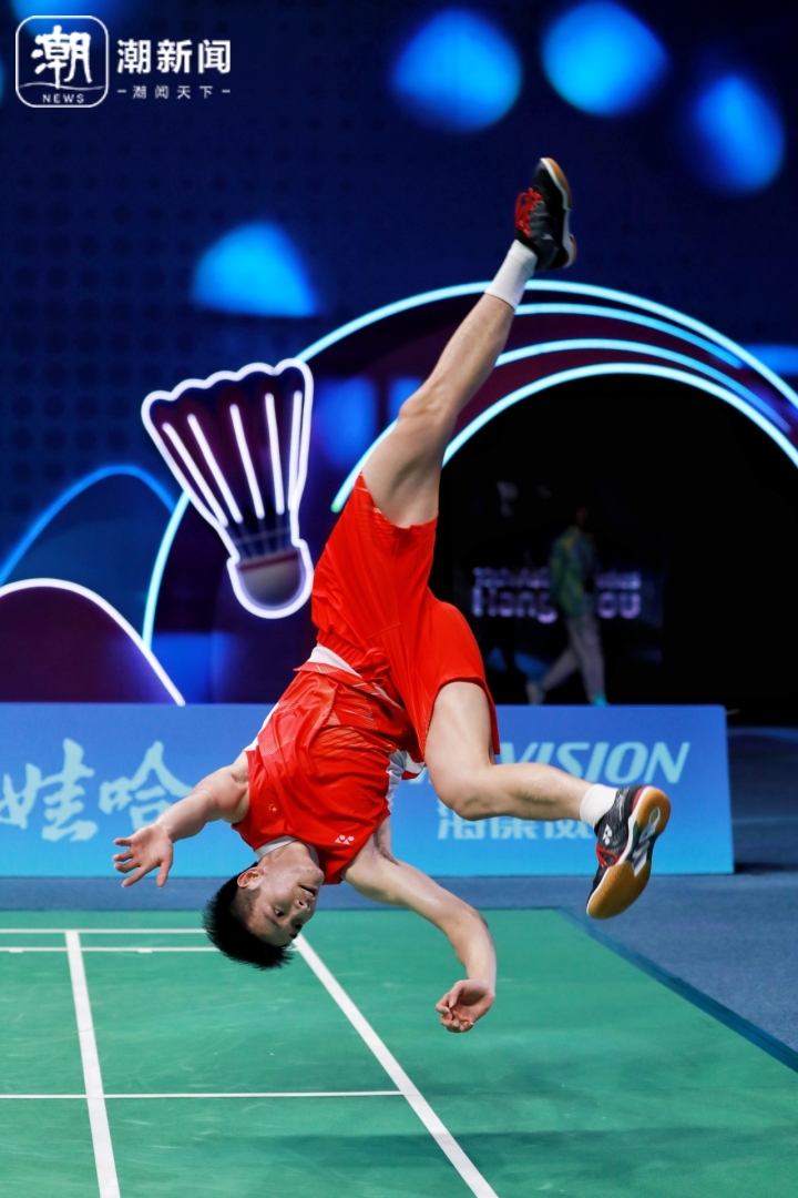 亚运会羽毛球男单决赛。潮新闻记者于诗奇摄