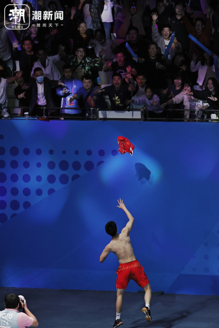 获胜后李诗沣将球衣扔给球迷。潮新闻记者于诗奇摄