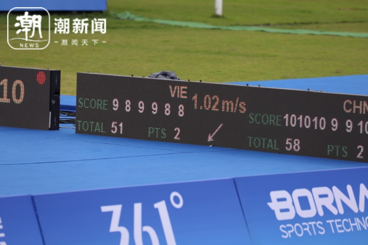选手面前的电子屏上会显示实时风向、风速等情况。记者俞刘东摄