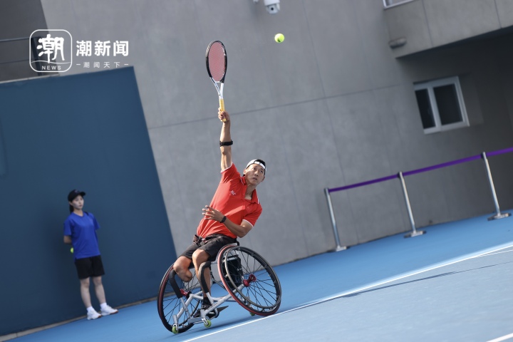 轮椅网球比赛中。潮新闻记者 包一圣 摄