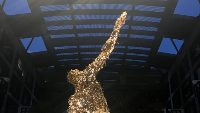 今天(12月9日),一件件通体用落叶堆积起来的雕塑已经立起来了。看到它们,意味着一年一度的美院“秋叶艺术节”正式开启。