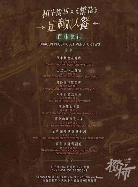 山西省亦开启输出模式,仅1月13日一天,山西省文旅厅抖音账号便发布了34条短视频,内容涵盖景点介绍、山西美食、地域文化等。河南省文旅厅则频繁更新官方账号短视频,据统计,在1月10日-13日分别发布了28条、35条、25条、23条短视频。在上海滩的和平饭店,为了抓住这一波热门影视剧《繁花》的文旅热度,和平饭店推出《繁花》套餐,双人就餐价格为1460元,另外额外收取16.6%的服务费,即总价1702元左右。公开资料显示,和平饭店位于上海市南京东路,距今已有百余年历史,是上海的城市名片之一。2007年,和平饭店停业修缮,耗资约5亿元。三年后,和平饭店重新开张,产权归属于锦江国际集团。