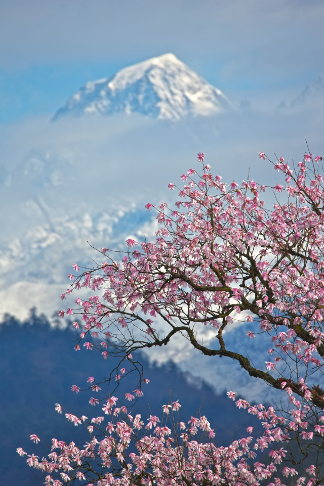 与贡嘎雪山交相辉映的康定木兰 图源/四川贡嘎山国家级自然保护区官网