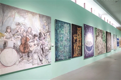 中国画学院的主题是“夏虫语冰”,书法学院的主题是“化裁存变”。从作品中可以感受到,年轻艺术家身上有一种“通古今之变”的历史自觉,将传统的笔法纳入自我生命的节奏中,书画传统的基因在延续,又获新生。比如书法系本科生纪家璇的楷书作品《火车驶向云外,梦安魂于九霄》。纪家璇介绍,自己用的是颜真卿的书体,写的内容是国内知名摇滚乐队“刺猬”的一首歌词,“当时听到这首歌,歌词特别打动我,所以就把它写下来,成为我的毕业作品。”在传统基因中注入当代灵魂,使它成为年轻人的一种个性抒发思想表达,就像这首歌的最后一句歌词写的那样:“一代人终将老去,但总有人正年轻”。