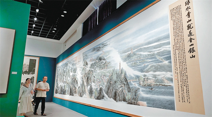 8月12日,“大地长歌——绿水青山就是金山银山理念提出20年艺术展”在浙江展览馆开展。本次展览分为“青绿之歌”“美丽之窗”“山川之颂”“绿富之路”四个篇章,以200余件精品力作,从不同视角展现浙江生态文明建设的生动实践和丰硕成果。杭州日报 记者 李忠 摄