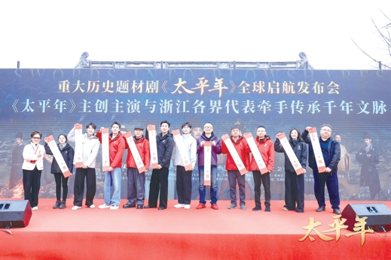 由华策集团出品,浙江广电集团、金柯桥文旅集团、华数集团联合出品的重大历史题材电视剧《太平年》昨日在钱王祠举行了全球启航发布会,白宇、周雨彤、朱亚文、俞灏明、董勇、倪大红、朱嘉琦等一众主演齐聚杭州。该剧即将于近期登陆央视一套,并在爱奇艺、芒果TV、腾讯视频以及全球100多家平台,以15种语言重磅播出。