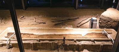 跨湖桥遗址博物馆,8000年前的独木舟。
