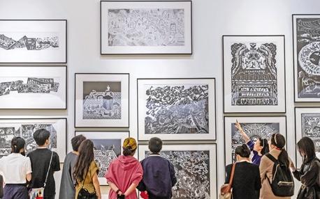 4月10日,中国美术学院举行2026年“国美发布”暨建校98周年系列学术活动。活动中,发布了第五届中国设计大展及公共艺术专题展、首批省级教科人一体改革试点新青年设计共创行动有关情况,中国美院“文艺复兴研究中心”揭牌。当日,师生还在中国美院中国国际设计博物馆为来访嘉宾导览“轮回——古罗马与汉代文明对话展”等展览。图为观展现场。
