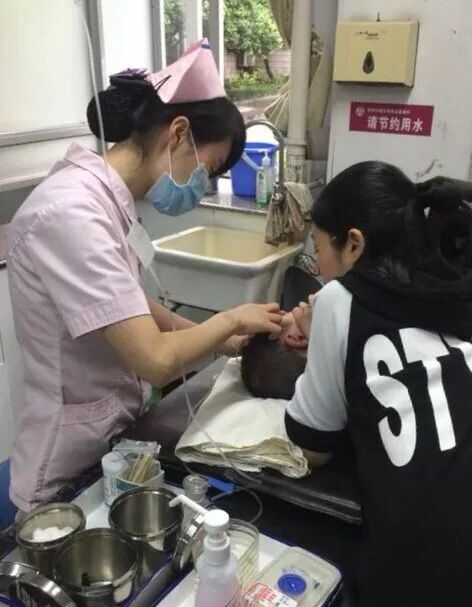 据围观者拍下的照片,经联系获悉,长发女子是区妇保院急诊、输液室护士长陆飞亚。