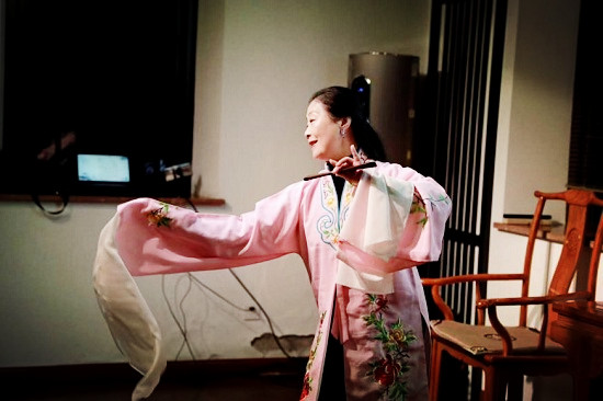 除了好吃的“伍公糕”,还有好听的“水磨腔”。在方志馆文杏馆内,来自雅部院的莫晶晶老师给游客们带来了一场昆曲音乐讲演会。