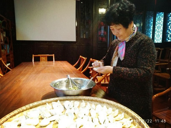 一大早,杭州方志馆的东院里一群市民游客和九州汉学的汉服爱者们就开始忙碌起来。包饺子、做麻糍、打年糕……热闹非凡,大家要在方志馆过一个不一样的冬至节,特别是打年糕的项目,从和粉、加水、蒸粉……都是按传统的方式在操作。