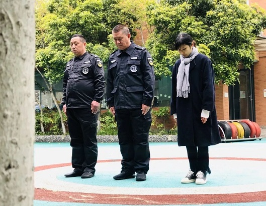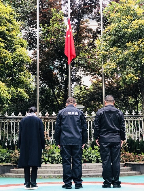 4月4日早晨九点,陶子幼儿园的值班教师与保安完成了简单而又严肃庄重的降旗仪式。十点,全体教职工一起致敬英雄,缅怀同胞,谢谢他们用生命守护住这万家灯火。