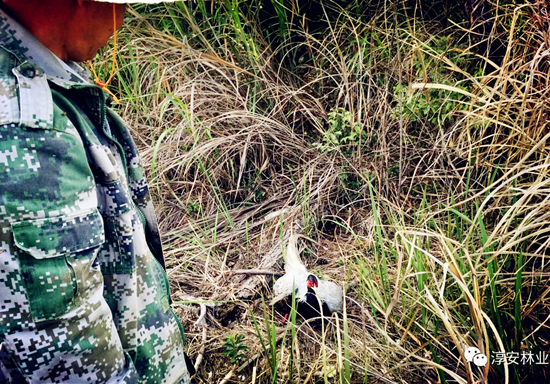 “我们发现它时已经落在水中了,不时地扑着自己的翅膀挣扎,由于湖面开阔,加上体型较大,它很难依靠自身力量游到岸上。”林场护林员刘荣昌说。护林员将它救上岸后仔细观察,这只白鹇并无大碍,在陪伴休憩一会后,便将其就地放生了。
