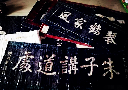 ▲赵家镇赵一村赵富台门门额、著名书法家何蒙孙题写的“琴鹤家风”拓片。