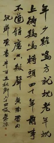 几年前,诸暨民间收藏家搞了一个书画展览,其中有不少何蒙孙的作品,看了之后震撼很大,特别是何蒙孙的书法作品给我留下极深的印象,我以为,何蒙孙的书法直如我开篇说的“墩厚味,雄健姿,刚劲骨,潇洒风,天然气”好像音乐家的余音绕梁一样,一直荡漾在我的脑海中。