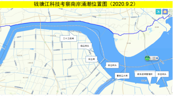 专家推荐,从近年现场观测情况看,钱塘江南岸上虞新东进闸至萧山外六工段闸沿江涌潮景观相对较为可观。