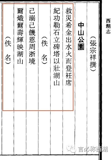 杭州人都知道中山公园中轴线上,“孤山” 两大字摩崖题刻前的东、西两侧,各有一座“亭子”,民国年间一度曾被俗称为 “文亭”和“武亭”。其中文亭在东侧,亭柱上刻有两副柱联,分别是: