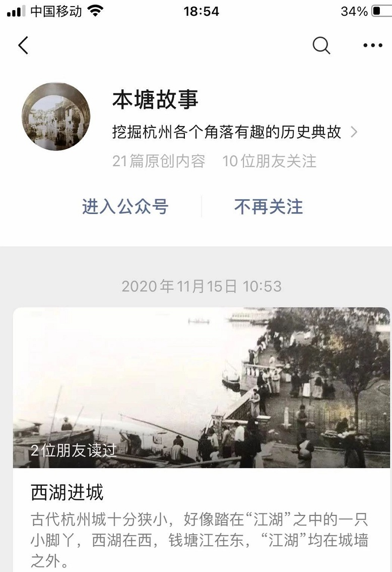 虽说直到2019年11月初举办第十三届西湖文化研讨会那天,我才在会场外初次遇见他本人,不过早在2015年,我受托做《弥陀山-松木场区片历史文化考察报告》文本时,就已经同他“神交”。那天当别人介绍他的大名后,我随即脱口而出喊了他的网名“麦克鲁汉”,一边就和他握手相识。原因很简单:我在网络和微信上搜寻弥陀山、松木场的相关资讯时,发现有一个叫做“本塘故事”的个人微信公号,里面讲了好多那一带居民的生活,尤其对被这个公号的主人讲了多遍的“阿布”的故事印象深刻。