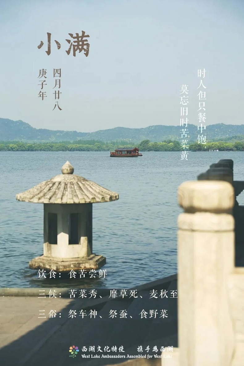 “苏堤看新绿。东郊玩蚕山。三生石谈月。飞来洞避暑。压堤桥夜宿。湖心亭采莼。晴湖视水面流虹。山晚听轻雨断雨。乘露剖莲涤藕。空亭坐月鸣琴。观湖上风雨欲来。步山径野花幽鸟。”