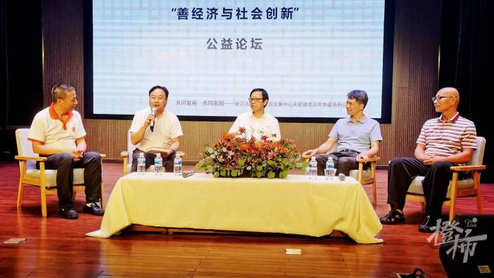 活动的下半场举行了以“善经济与社会创新”为主题的公益论坛。浙江共同家园公益发展中心创始人、理事长戴建明就善经济生态链与传承式社会企业的公益创新、社会创新等方面的探索与实践做了主题演讲。到会领导和嘉宾分别做了主旨演讲,就如何在浙江高质量发展建设共同富裕示范区的历史机遇下,承担使命,发挥作用,开展了研讨与交流。