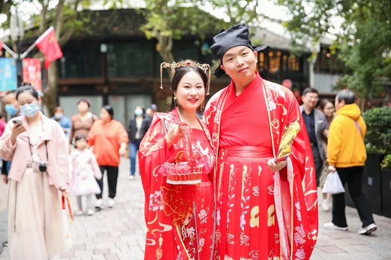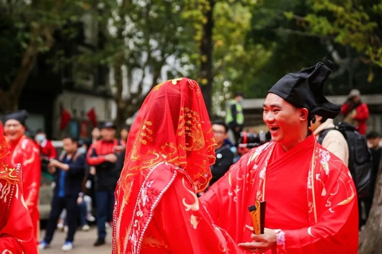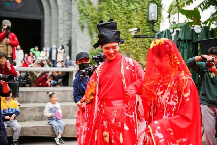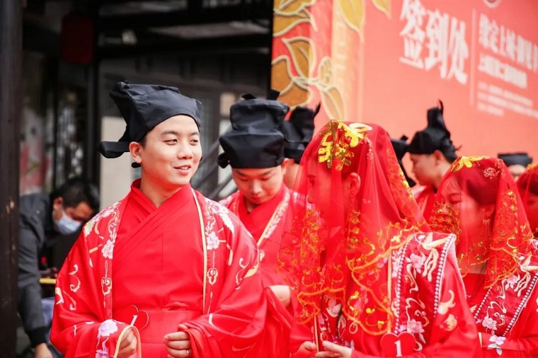 10月24日,作为2021宋韵文化节系列活动之一的“缘定上城·御见幸福”第二届宋韵婚典集体婚礼活动在历史文化悠久、旅游商贸繁华的南宋御街与河坊街拉开帷幕。该活动由上城区委宣传部、上城区民政局和清河坊资产管理有限公司主办;四季青服装集团有限公司、浙江省婚姻家庭协会、杭州新闻广告传媒有限公司承办。11对新人参加了此次集体婚礼。