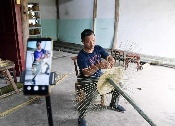 在社交网络上录制短视频源自一次偶然。2019年,潘云峰无意间刷到了一个竹编师傅的视频,这让从小学竹编的他觉得“自己也可以试试”。如今,潘云峰的短视频账号全网已有千万粉丝。