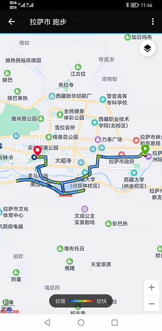 10月14日早上,为了适应高原跑步,我约已在拉萨的温州同乡阿季和阿蔡以625配速,跑了10公里,大家感觉都还好。