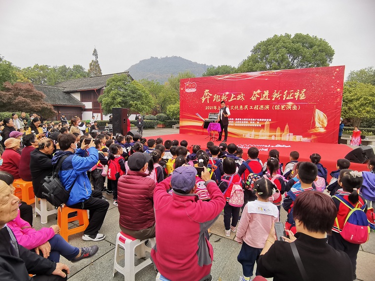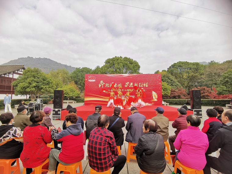 11月19日,玉皇山社区党委联合杭州市上城区文化和广电旅游体育局特别邀请了杭州话剧艺术中心的演出团队在八卦田遗址公园内为辖内居民献上文艺汇演。一大早,公园内就热闹非凡,话剧演员们表演了开场舞《绽放》,在欢快的气氛中,拉开了活动的序幕。随后,朗诵《江南韵》、话剧《红船.追梦》选段《我爱这片土地》、小品《防不胜防》等精彩节目轮番上阵。文艺汇演中还穿插着党史教育、宋韵文化等知识互动有奖问答,台下居民们积极参与,营造了“邻里其乐融融”的和谐社区氛围。