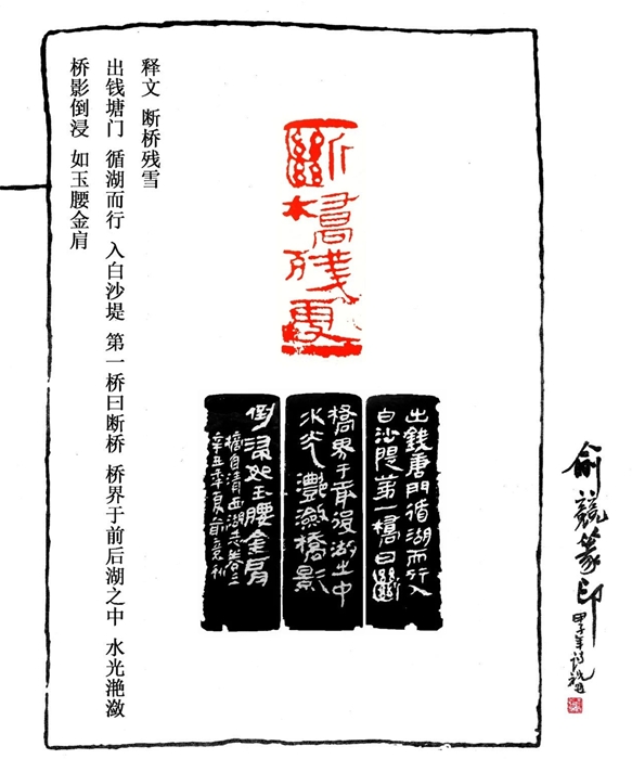 印章边款文字取自清雍正《西湖志·苏堤杂花》。唯其文字俊美耳!