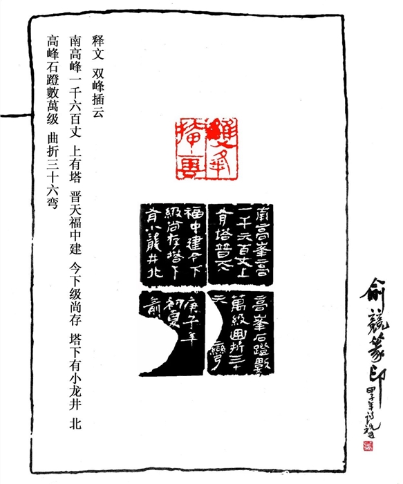 边款文字取自清雍正《西湖志》:“南高峰高一千六百丈,上有塔,晋天福中建,今下级尚存,塔下有小龙井;北高峰石蹬数万级,曲折三十六弯,唐天宝中建浮屠七层于顶。”