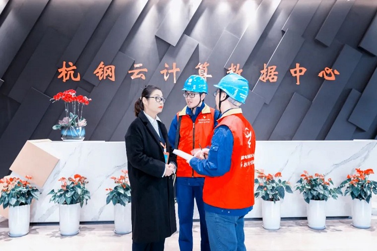 国网杭州供电公司员工在杭钢云数据中心机房了解企业用电需求丨丁豪 摄