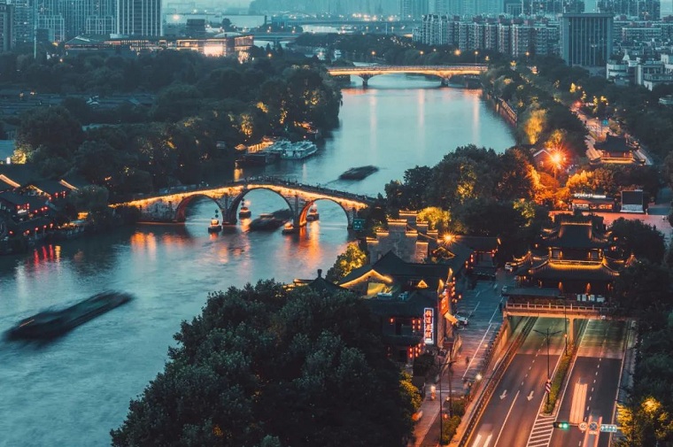 在拱墅12公里的京杭运河段,国网杭州供电公司在武林门、信义坊等游船码头建成了船舶岸电服务区8个,年累计替代燃油约8000吨,推广纯电动水上巴士、漕舫等游船共37台,年节约用能支出约3000万元,打造出了“全电景区”的运河样板。