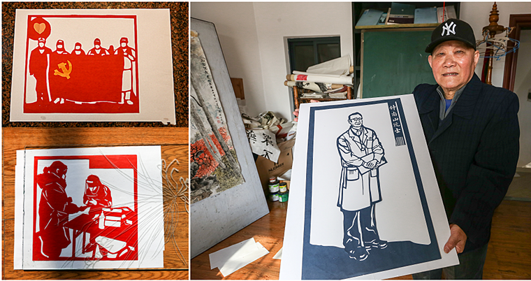 值得一提的是,陈雪亮不仅绘制黑板报,还创作了剪纸、书画等作品助力抗击疫情。
