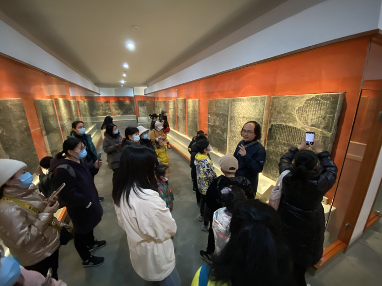 站在孔庙的棂星门前,王海朙从孔子的“孔”字释义开始讲起,一路沿着泮池,两侧庑房,大成殿,重点讲述了孔庙的镇馆之宝“南宋太学石经”。
