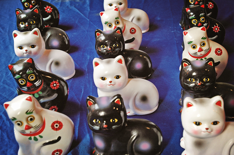 衣锦桥是旧时人们去半山娘娘庙的必经之路。每年春天,杭嘉湖一带蚕户桑农有到半山娘娘庙进香祈求平安的习俗。人们划船至衣锦桥停泊,然后上岸去庙里进香,同时又在衣锦桥一带交易桑苗,形成衣锦桥热闹的集市,既有买卖桑苗的,又有其他各种小商品的交易,有趣的是,还有不少泥塑的彩猫的小摊位。原来,这一带养蚕户都有在蚕室内摆设泥塑彩猫的习俗,用以恐吓老鼠,保佑蚕室平安。”仔细琢磨一番,这双面泥猫实在是一个实践了半之哲学的精妙样板。