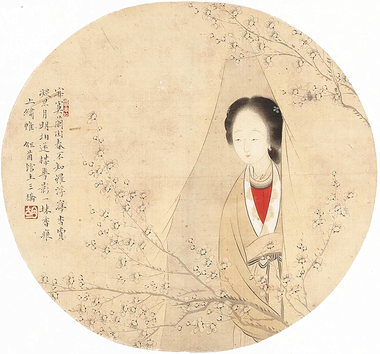 清 胡锡珪《卷帘探梅纨扇》苏州博物馆藏