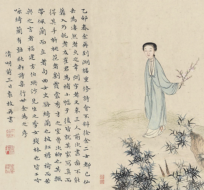 除了早逝,远行也是隔绝“蕉园娣姒”们的另一道鸿沟。康熙十九年(1680)春,顾姒将要“从其夫至京师”,临行前诸女纷纷为之送行。柴静仪赋诗《送顾启姬北上》,谓:“春来万物柳,叶叶是离愁。顾我穷途者,逢君意气投。”钱凤纶、林以宁也作词曲相赠。即使在离杭之后,林、顾二人间亦有书信往来,互叙契谊。
