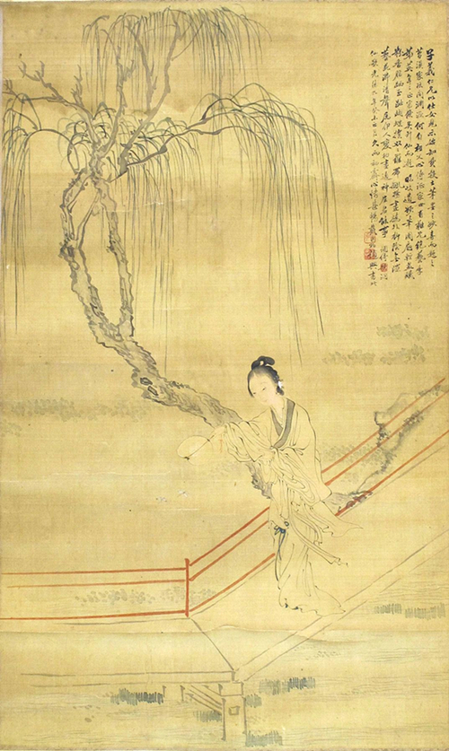 清 费以群《仕女扑蝶图》浙江省博物馆藏