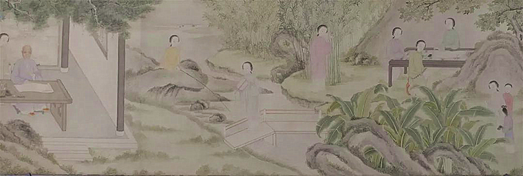 (清)叶衍兰《摹随园十三女弟子湖楼请业图》(局部),纸本设色,32.5厘米×467.8厘米,
