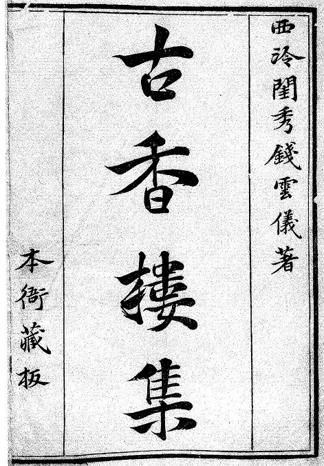 核心人物中,钱凤纶也算一位。她是顾之琼的次女,嫁于顾若璞的曾孙黄弘修为妻,诗文兼顾、钱、黄三家之风,且诸体皆工,可谓才情横溢,著有诗集《古香楼集》《散花滩集》和词集《古香楼词》。在她的诗词作品中,有很多关于闺房生活的描写:“半壁青灯临卫帖,一窗寒雨读陶诗。”“一杯清茗一枰棋,正杏雨香飞候。”“喜逢素心人,并坐芝兰室。笑语春风生,雍容事文墨。图书纷绮阁,棐几陈琴瑟……”无一不展现出“名士”型才女日常生活中的闲雅清逸形象。