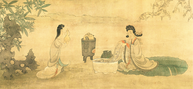 尤诏、汪恭合作《十三女弟子湖楼请业图》(局部)