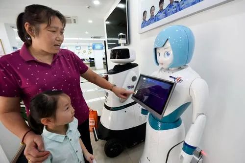 ↑前来办事的居民正向“智能导询机器人”问询办事流程(杭州日报 李忠摄 )