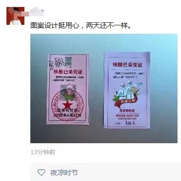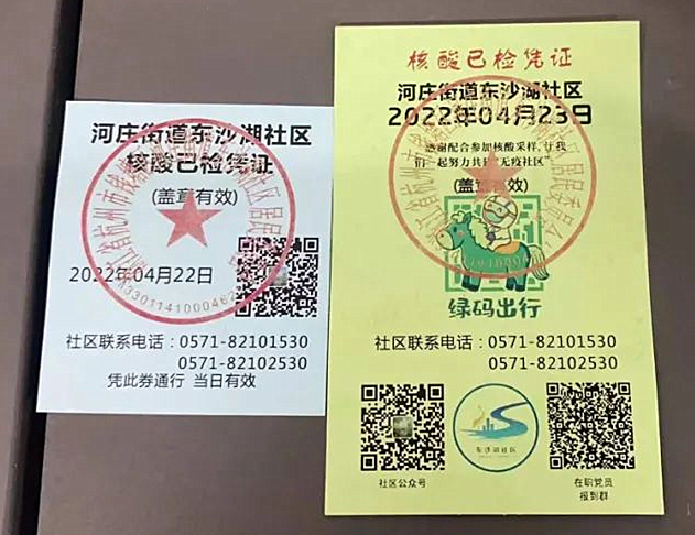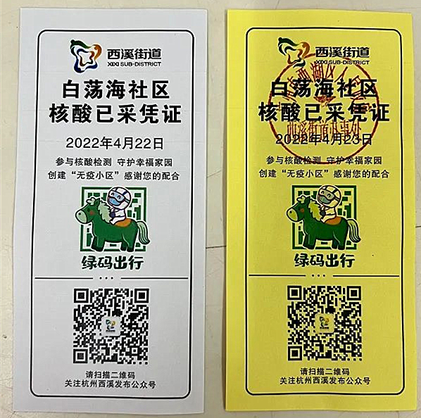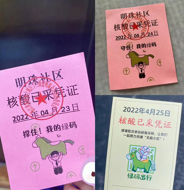 晒出这些各个社区发放的凭证,展现了杭州人面对疫情时,对生活积极向上的态度,而这些外形美观的凭证背后,是广大医护人员、街道社区工作者、志愿者共同传递出来的城市的速度和温情。你们社区的核酸采样凭证是怎样的?