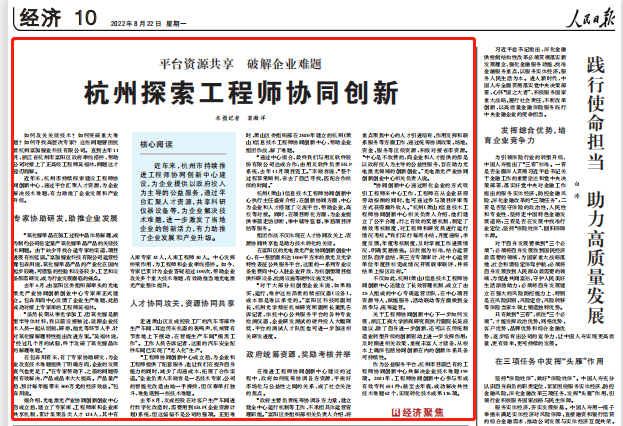 近年来,杭州市持续探索建设工程师协同创新中心,通过平台汇聚人才资源,为企业解决技术难题,有力助推了企业发展和产业升级。
